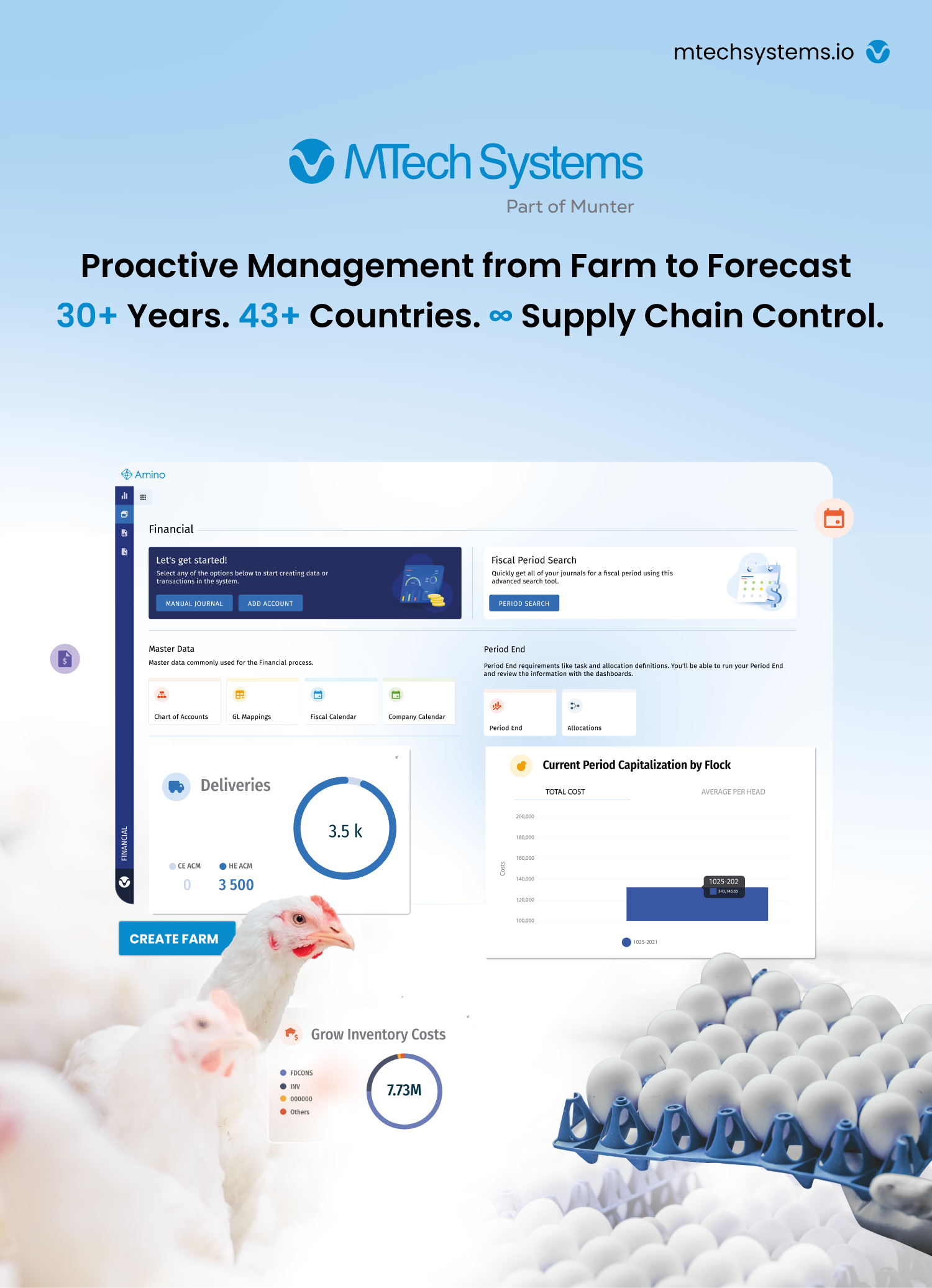 With over 30 years of industry-tested experience and a team of experts who truly understand the poultry industry, its challenges, and opportunities; MTech Systems delivers intuitive solutions with state-of-the-art capabilities for every aspect of your operations, no matter the size or complexity of the scenarios.